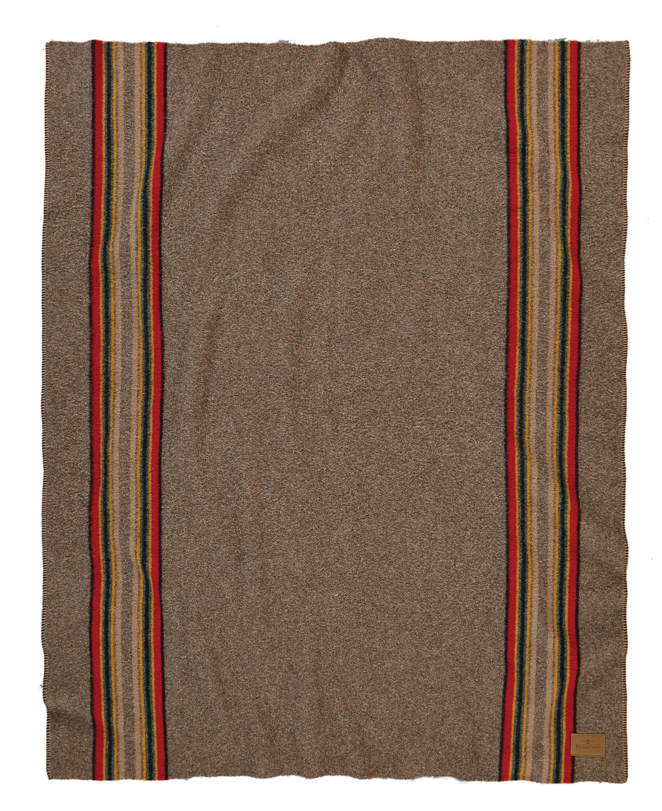 Our camp blankets and throws are favorites. Soft, durablewool in richly colored mixed yarns and iconic stripes wovenin rustic patterns inspired by the ombre blankets that cowboysunrolled at camp after long days of riding the range. Woven in Washington state. 54″ W x 66″ L